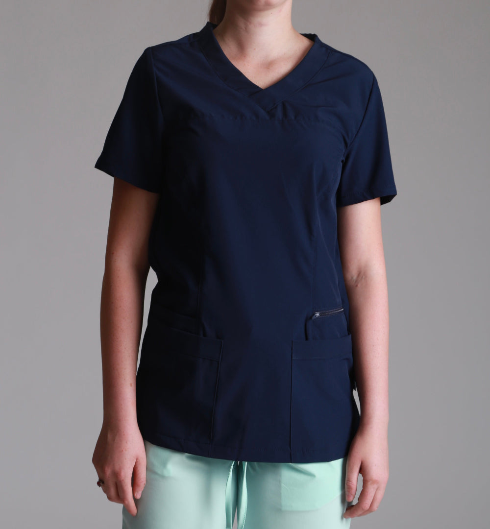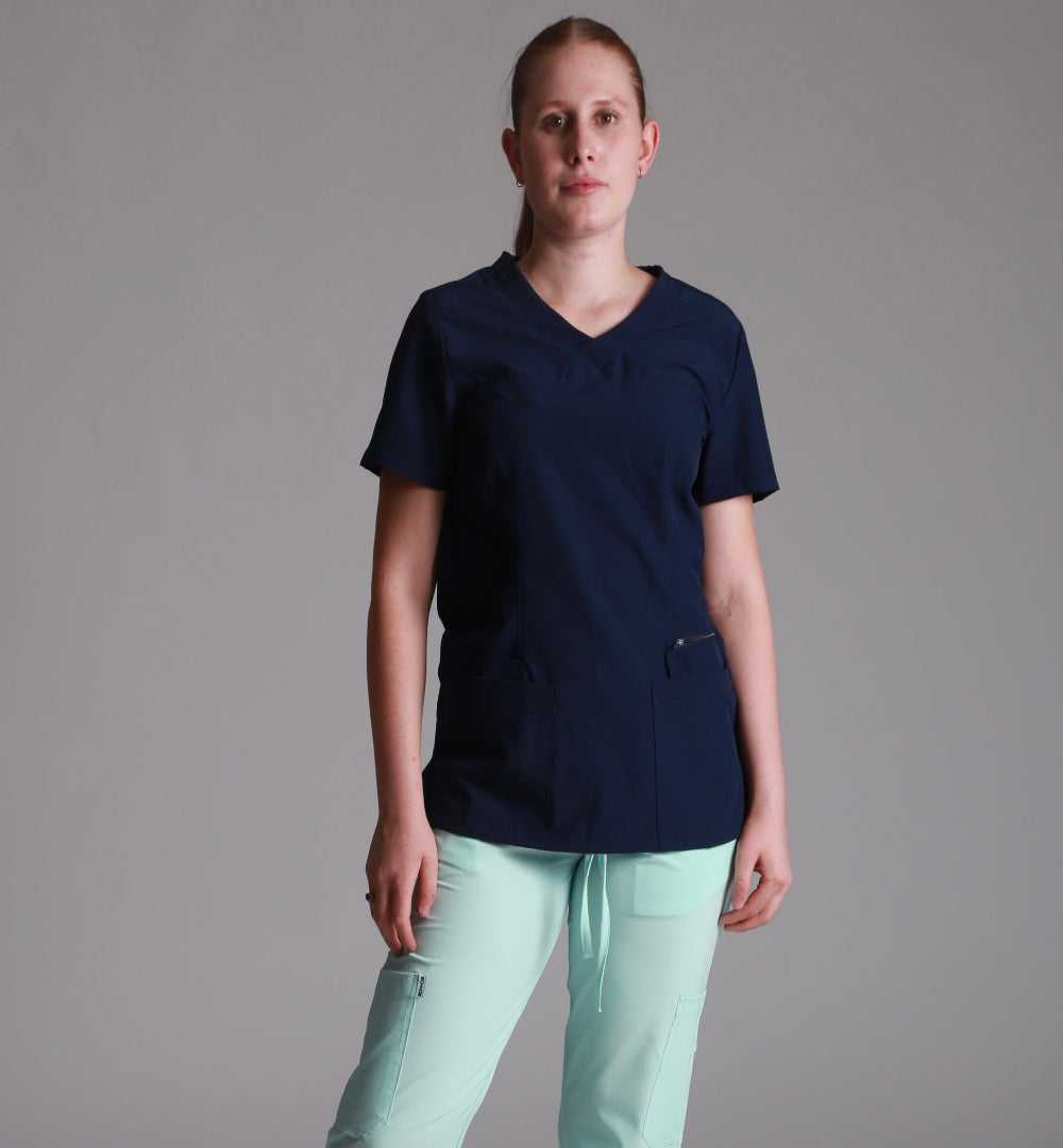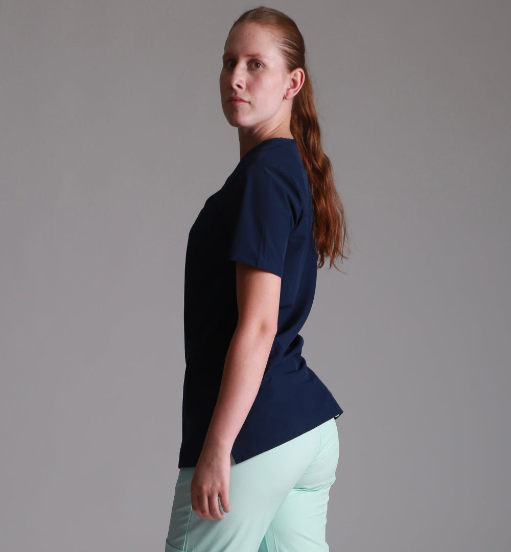 - Diseño inteligente: Filipina con escote en V, bolsas inferiores y una bolsa chica con cierre para mayor seguridad.